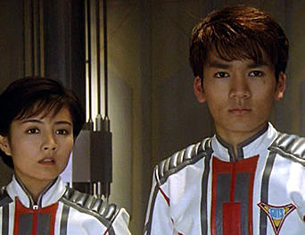 劇中還替大吾安排了一個紅粉知己雷娜,起先他們還比較像姐弟關係...不,應該說,面對隊上四個衝動莽撞的男同事(包含那個上酒吧只能點牛奶的棟方leader),她也只有無奈興嘆的份吧。至於她後來是為何獨異於眾人而發現了大吾是迪卡的真實身分對我始終是個謎,總之後來兩個人就莫名其妙的被編劇送作堆了。不過為什麼明明是出色飛行員,又是萬中選一GUTS中一員的她,在大吾化身為迪卡出戰時只會在一旁哭天搶地的設定讓我很不能接受,看來日本的大男人主義連這種電視劇都不放過。不過好像到響鬼裏有一點點改變了,因為不會開車、不會用手機的響大叔只有靠立花姊妹的份兒啊